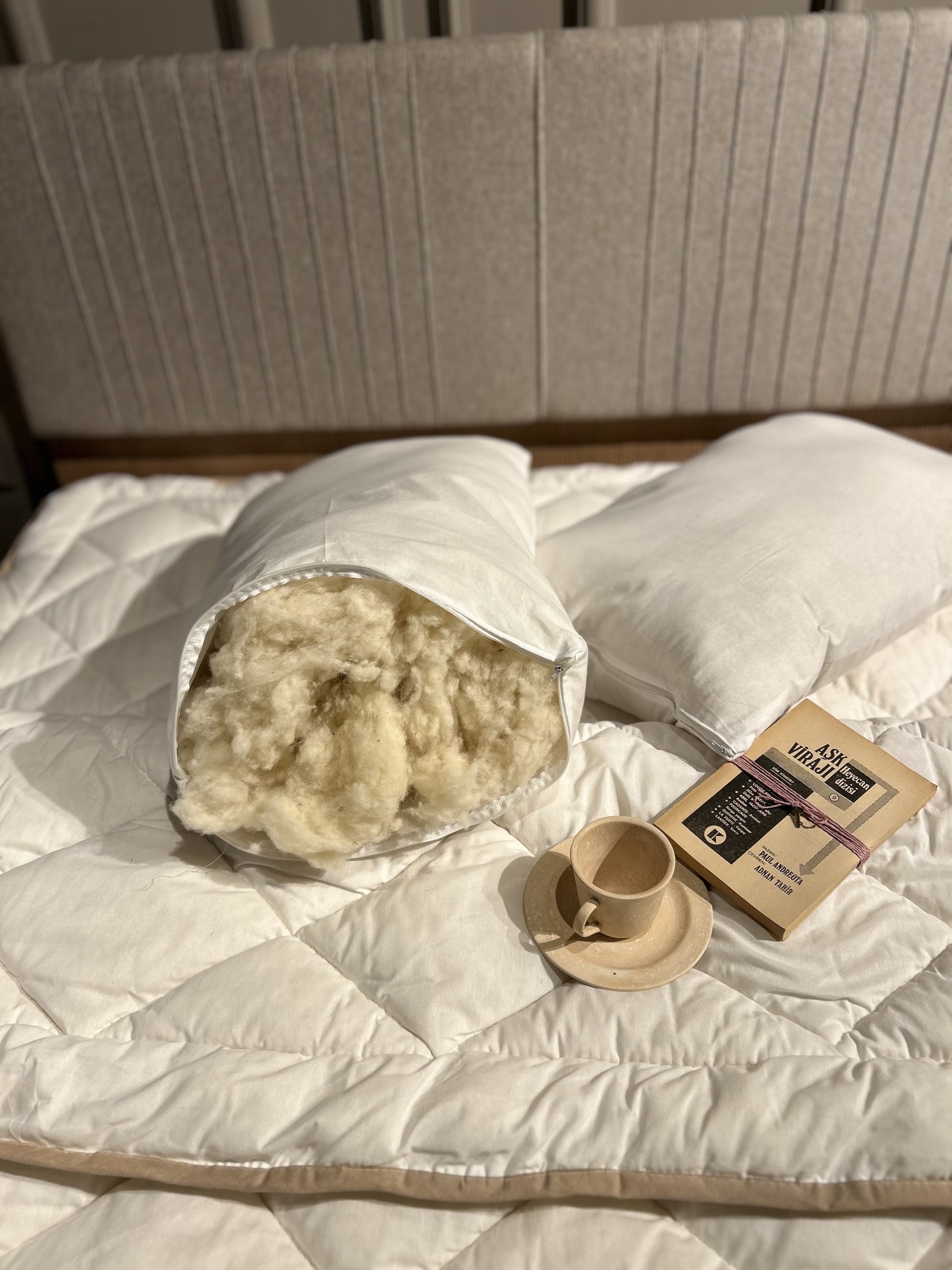 - ✨ 2 Adet Yastık: Her biri 1250 gr dolgu ağırlığında, doğal yün dolgu