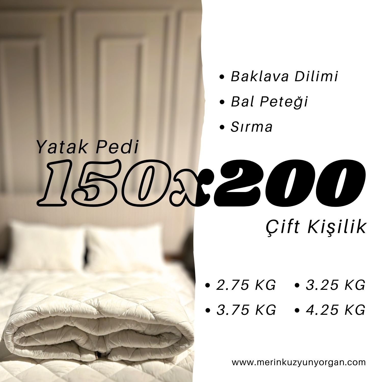 - Boyut: 150×200 cm – Çift Kişilik yataklar için uygundur.