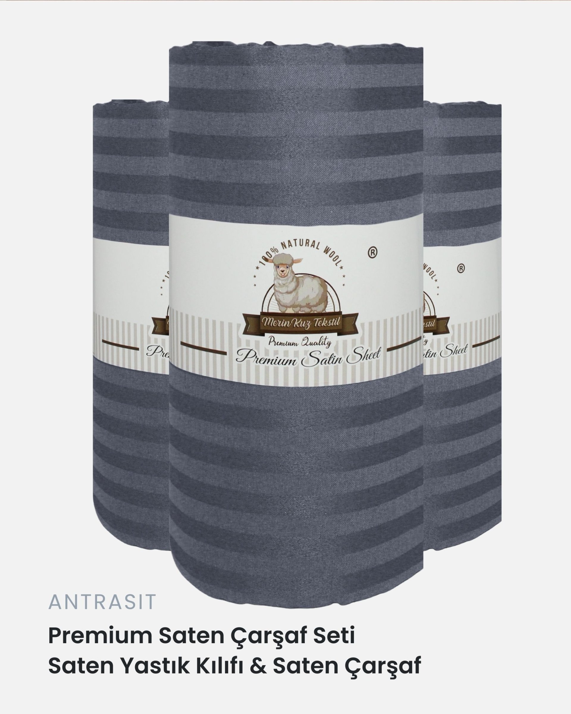ANTRASİT GRİ SATEN ÇARŞAF VE YASTIK KILIFI TAKIMI