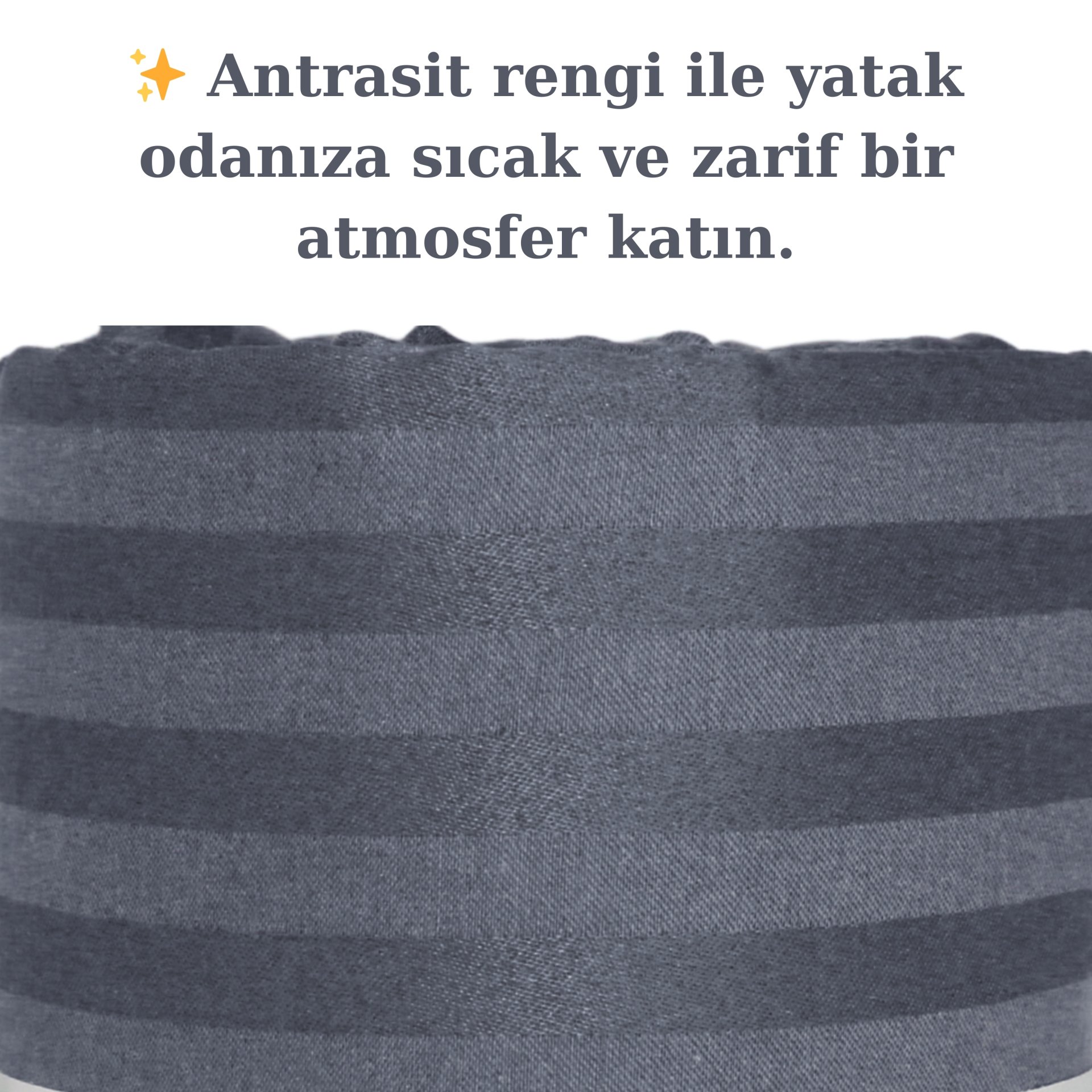 Yatak odasında modern, şık ve zamansız bir görünüm isteyenler için en ideal tercihtir. Antrasit gri rengin asaleti, saten kumaşın ipeksi dokusuyla birleşerek yalnızca konforlu bir uyku değil, aynı zamanda görsel bir şıklık da sunar. Uzun ömürlü, zarif ve sağlıklı bir uyku deneyimi arayan herkes için mükemmel bir seçimdir.