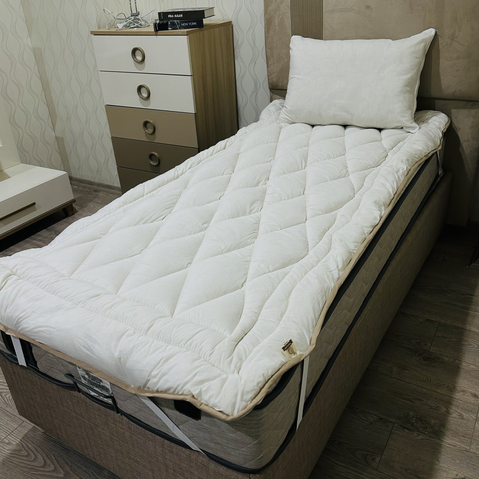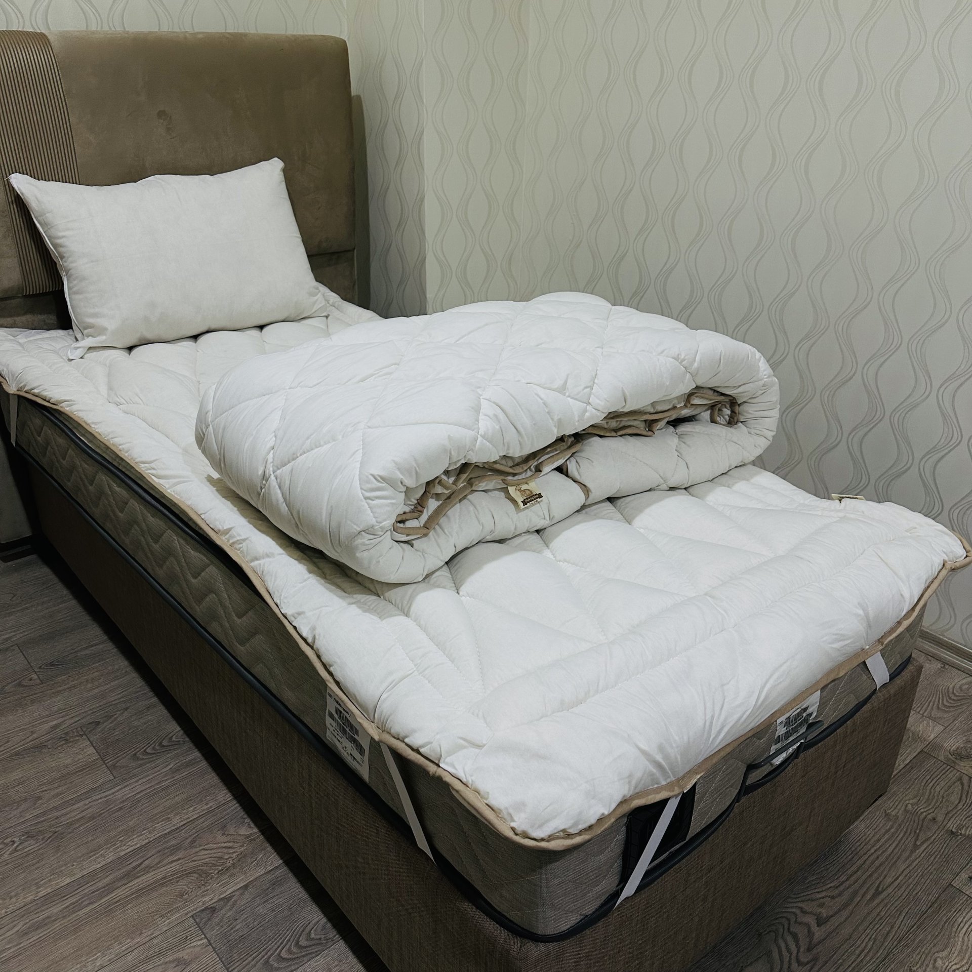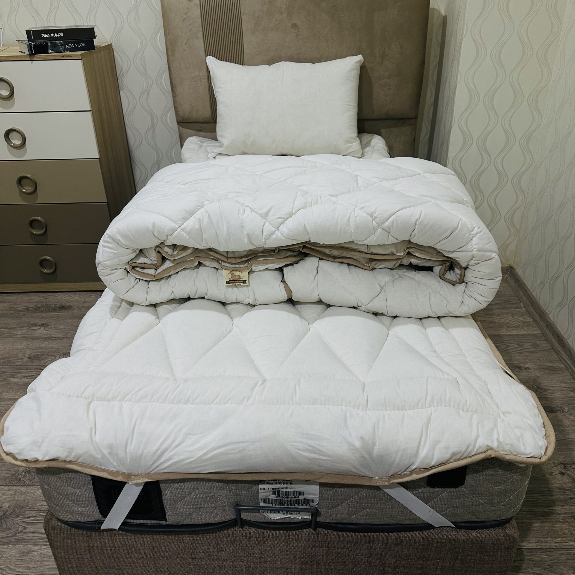 TEK KİŞİLİK %100 DOĞAL KUZU YÜNÜ YORGAN, YATAK PEDİ VE YASTIK SETİ